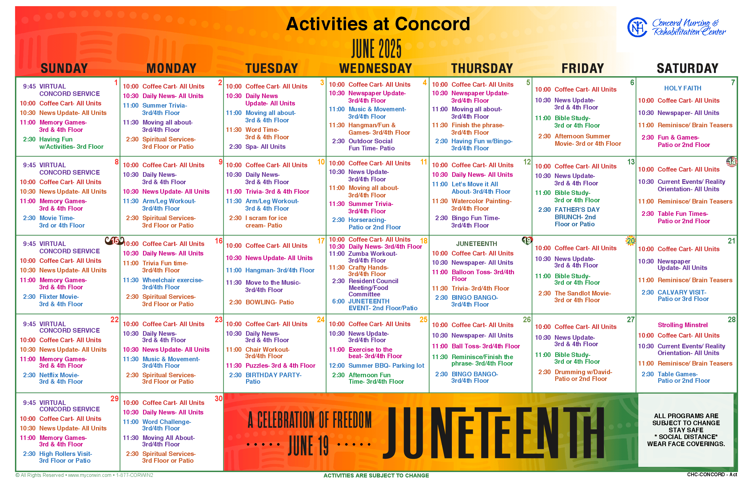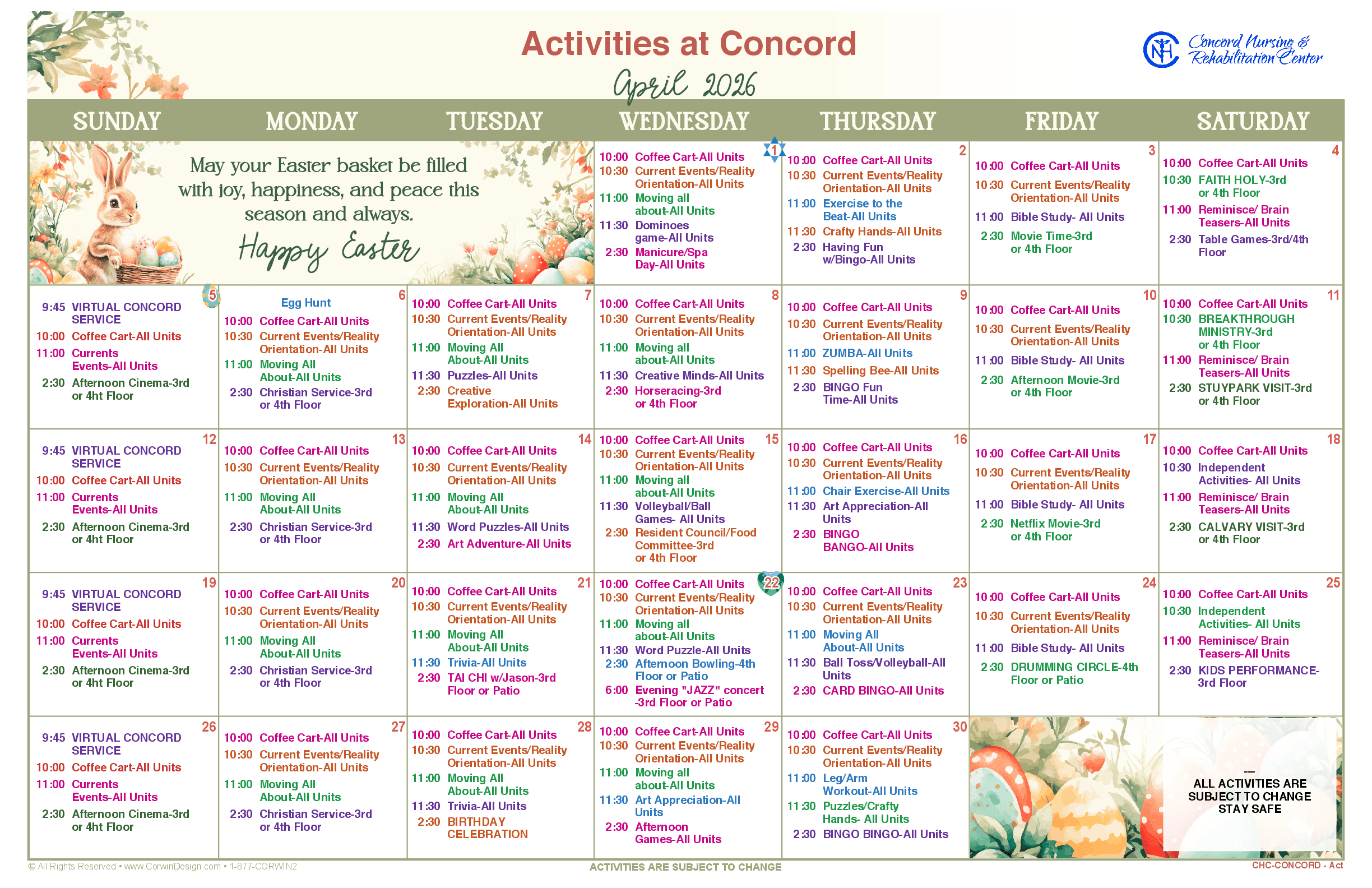 Concord Nursing and Rehabilitation Center is a vibrant community of family and friends getting stronger together.